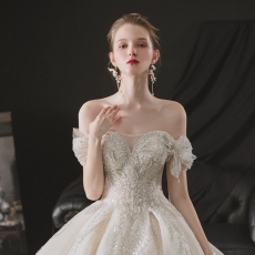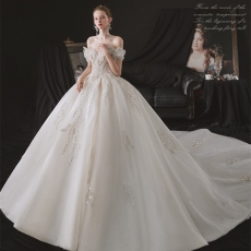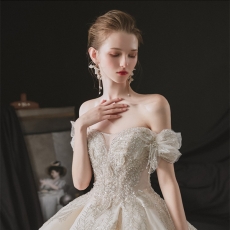 商品相册:欧式一字肩婚纱气质新娘礼服豪华奢侈小个子森系超仙梦幻第