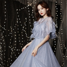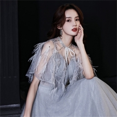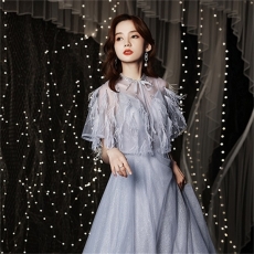 商品相册:灰色宴会晚礼服气质高端显瘦轻奢名媛年会主持人连衣裙第