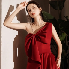 商品相册:酒红色新娘敬酒服女冬季回门订婚高级感气质宴会晚礼服裙第