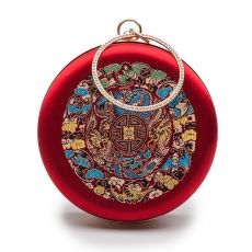 商品相册:手工红色龙团新娘配民族风礼服圆型手拎斜挎盒子女包第