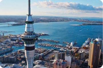 1、【奥克兰天空塔】它是新西兰的标志建筑物,也是南半球最高的建筑物,抵达后乘坐玻璃电梯登上190米处的观景台,观赏奥克兰的全景,在这里您可以看到82公里远的美景。