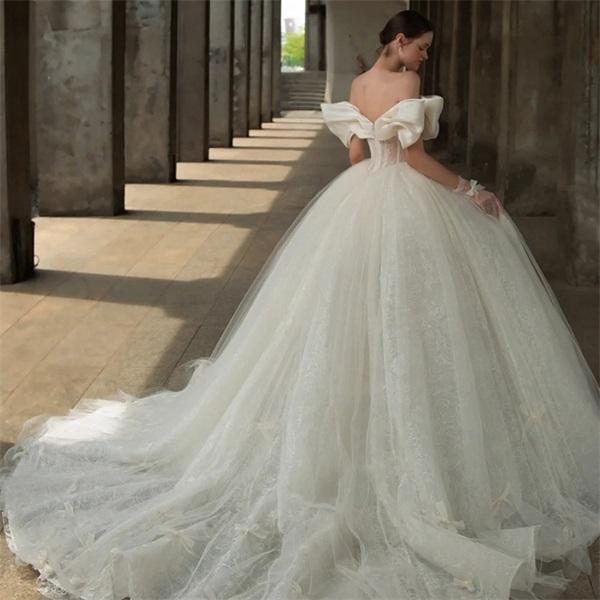 法式轻婚纱新娘白色气质旅拍简约森系日常一字肩小个子礼服