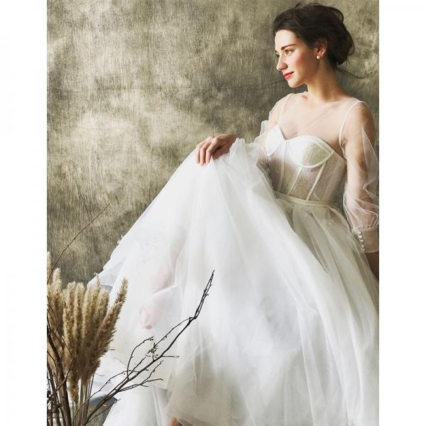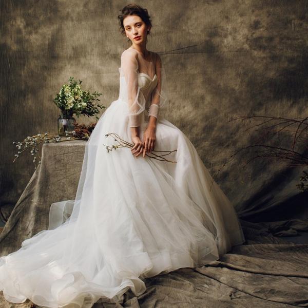 新款婚纱简约轻便小清新出门旅拍花朵婚纱小拖尾