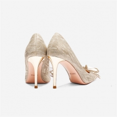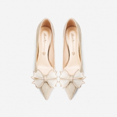 商品相册:香槟色婚鞋新款新娘鞋蝴蝶结高跟鞋水晶单鞋细跟第