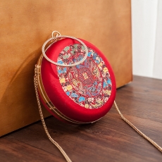 商品相册:手工红色龙团新娘配民族风礼服圆型手拎斜挎盒子女包第