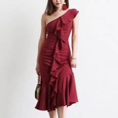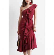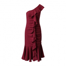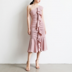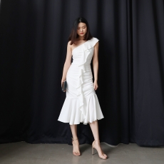 商品相册:荷叶边单肩收腰包臀鱼尾裙气质伴娘礼服连衣长裙第