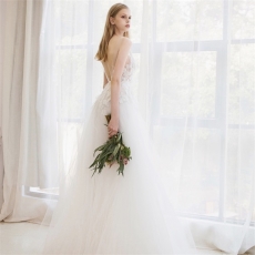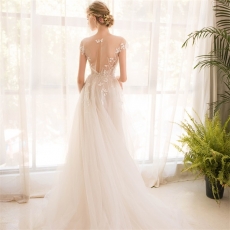 商品相册:新款婚纱简约轻便小清新出门旅拍花朵婚纱小拖尾第